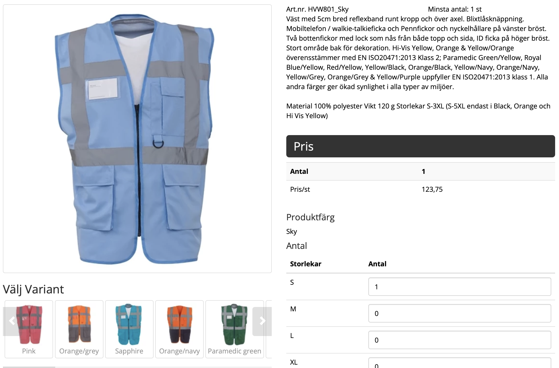 Det finns även möjlighet för de som vill att beställa en personlig väst med exakt samma tryck. Vill man ha eget tryck så är det upp till var och en att fixa det på lämpligt sätt.